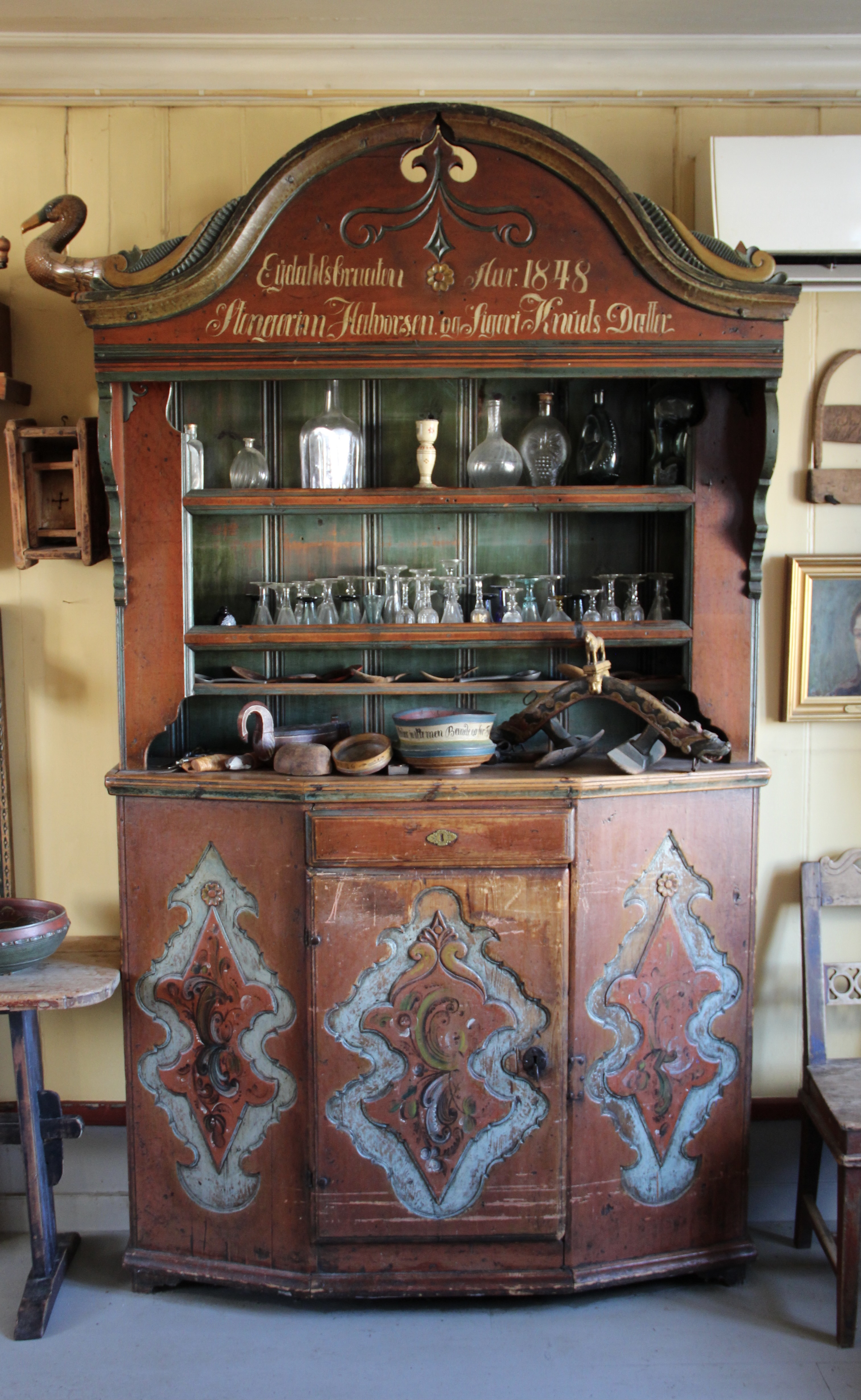 Første auksjon(20.mai) blir hovedsakelig fra første etasje i hovedbygning med mange fine bondeantikviteter, glass, Harald Kihle bilder og diverse fra loft og låve. Kunst legges ut som kombinert nett/hammerauksjon. Resten er ren hammerauksjon. NB: Flere oversikts bilder kommer.